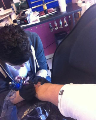Che getting tattooed at Miami Ink by Federico Ferroni, a specialist in the Japanese style and owner of ink pigments, Solid Ink