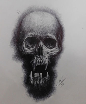 Che develops his black and grey style by practicing biro drawings. Biro pen is similar to tattooing, build shades with layering, no erasing etc...
